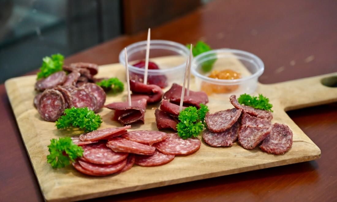Unser erster Halt war in der alten Markthalle Vanha kauppahalli direkt am Hafen. Hier starteten wir mit einem kleinen Fleisch-Snack. Es gab Bärensalami, Elchwurst, Rentierschinken und noch ein paar andere Fleischvarianten aus Finnland. Für viele ist der Gedanke Rentier oder Bär zu essen erstmal ein wenig befremdlich. Allerdings ist es Teil der finnischen Kultur und gehört dementsprechend dazu. Darüber hinaus ist Rentier-Fleisch das meist gegessene Fleisch in Finnland und das durchaus zurecht. Denn es schmeckt verdammt lecker!