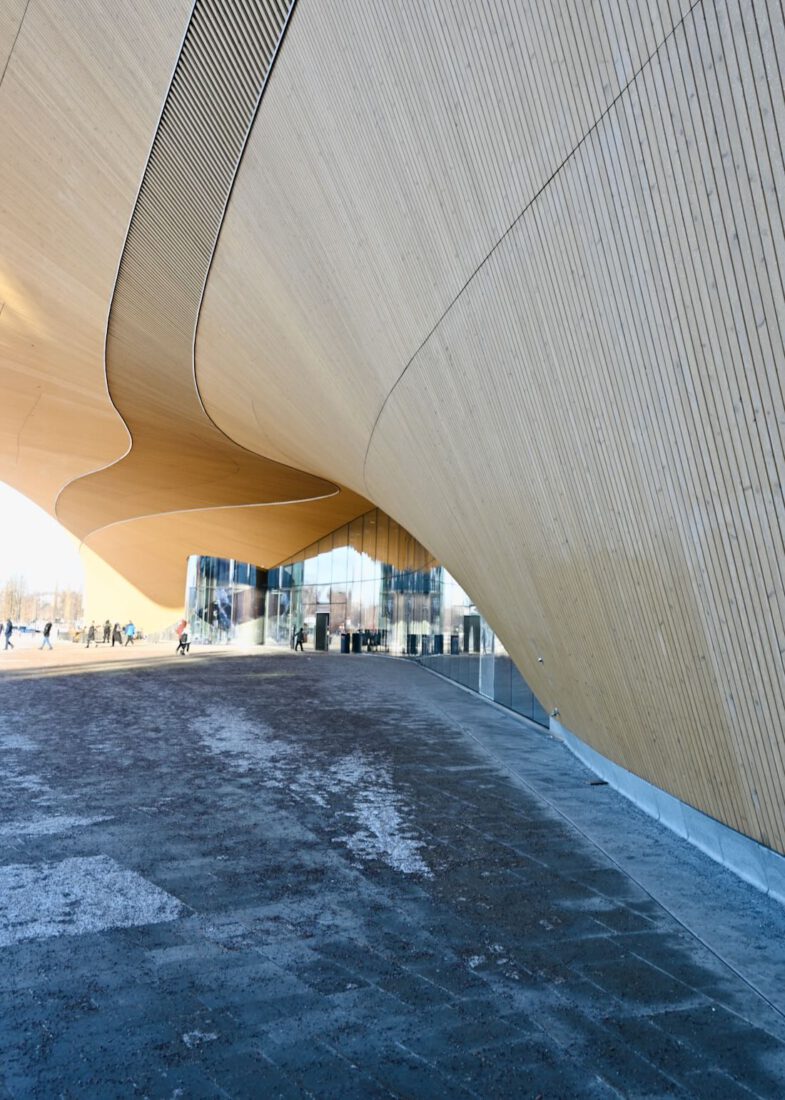 Nach dieser Stärkung spazierten wir gemütlich durch die Stadt. Nach etwa 15 Minuten erreichten wir die große Odi Nationalbibliothek von Helsinki. Die Bibliothek ist eines der Wahrzeichen Helsinkis und zählt zu den modernsten Bibliotheken der Welt. Neben Büchern und Computer gibt es hier Meetingräume, Labore, 3D-Drucker, Gamingräume und sogar Musikstudios. Quasi alles, was das Herz begehrt. Auf dem obersten Stockwerk befindet sich ebenfalls ein kleines Café, wo bereits unser nächster Snack auf uns wartete: karelische Piroggen. Ein hart gebackener Teig, welcher oben offen und gefüllt mit einer Art Milchreis ist. Oben drauf kommt dann in der Regel Eiersalat und ein bisschen Obst und Salat.