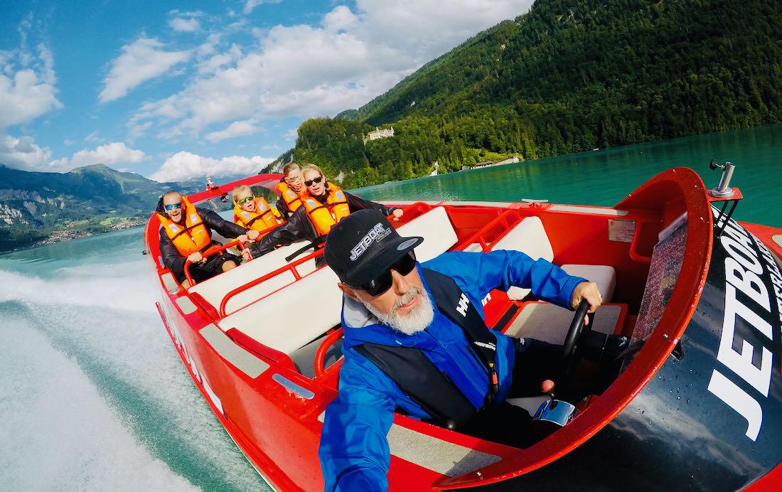 Wir fuhren wieder zurück zum Brienzer See. Dort empfing uns Dino, ein cooler und sympathischer Zeitgenosse von Jetboat Interlaken, der mit uns über den See brettern wollte.