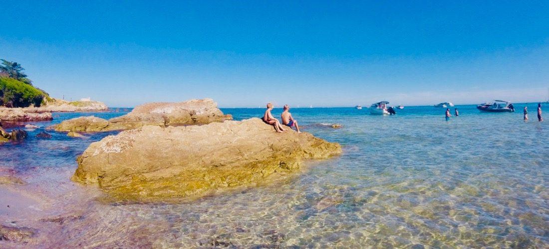 Wir mussten etwas früher aufstehen. Gefrühstückt wurde also heute im Hafen von Sainte-Maxime bevor wir das Boot bestiegen, welches uns nach Porquerolles auf die Îles d’Hyères bringen sollte. Nach 2,5 Stunden Bootsfahrt direkt an der Küste der Côte d’Azur entlang, erreichten wir unser Ziel. Noch ein halber Kilometer Fußmarsch und da waren wir. Ein wunderschöner Sand-Strand. Davor ankerten einige Segelboote. Wir machten uns hier einen sehr schönen entspannten Tag und genossen das warme Mittelmeer bevor es gegen späten Nachmittag wieder mit dem Boot zurück nach Sainte-Maxime ging.