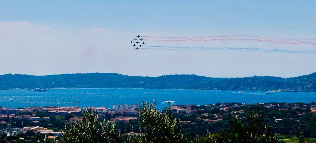 Die Olivenbäume ganz in der Nähe von Sainte-Maxime auf der Domaine La Pierre Plantée werden komplett ohne Pestizide bewirtschaftet und das Olivenöl und die Oliven sind somit komplett BIO. Leider kann man ja keine Olive einfach so vom Baum kosten. Aber oben auf dem Olivenberg standen 3 Feigenbäume, wovon einer die leckeren gelben Zuckerfeigen trug. Wir schlugen ordentlich zu. Als wir weiter gingen, flog auf einmal eine Staffel Jets durch die Bucht, welche die französische Flagge in den Himmel zeichneten. Sowas hatten wir noch nie gesehen!