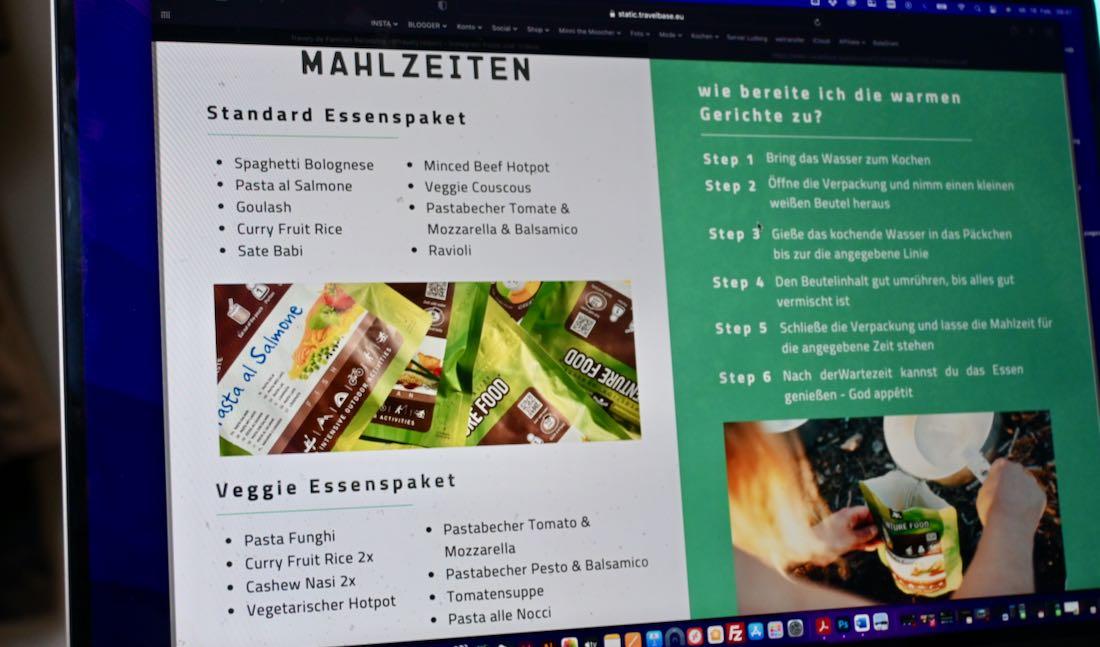 Etwas zu Essen brauchen wir natürlich auch noch… Da hatten wir die Wahl zwischen zwei Varianten (mit Fleisch oder vegetarisch). Dazu schreiben wir weiter unten im Artikel nochmal etwas mehr.