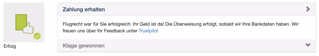 In unserem Kundenportal steht nun diese Information. Wir freuen uns über diesen super Service von Flightright und sind gespannt, wann das Geld bei uns erscheint.