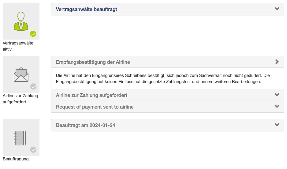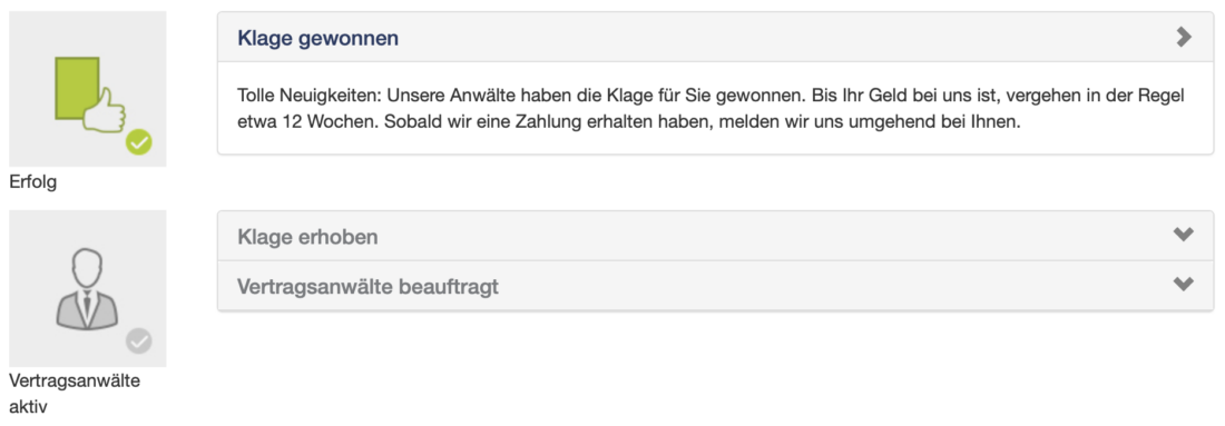 Wir haben im Portal von Flightright in unserem Zugang nun folgende Infos abrufen können: